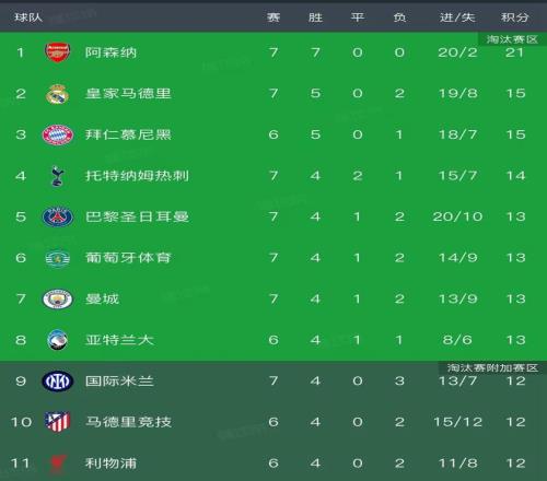 欧冠第7轮结束了9场比赛,最新积分榜如下!