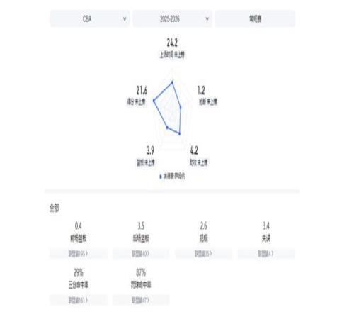 18次出场后,他场均15.1分9.1篮板3.9助攻,投篮命中率54.8%,三分命中率29.2%