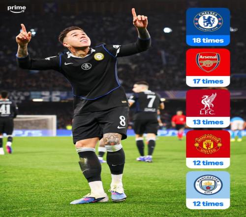 英格兰球队晋级欧冠16强次数:切尔西18次最多,阿森纳17次第二